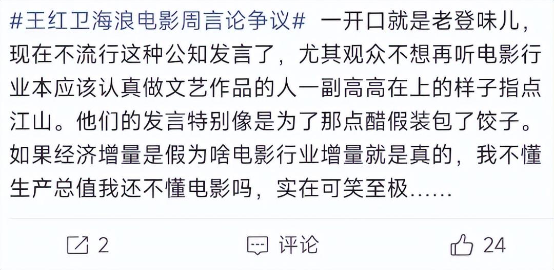 从这里可以看出,这些电影人只会让观众反思,从不在自身找问题,票房不好是观众不懂欣赏,口碑不行也是观众不懂得欣赏,反正他们这些拍电影的就是没问题,甚至他们的口无遮拦,还连累到一些好电影的正常发售。