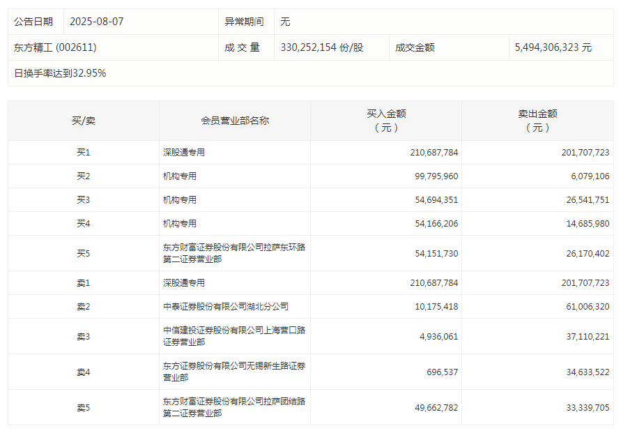 东方精工今日涨停 三机构净买入1.61亿元东方精工今日涨停 三机构净买入1.61亿元