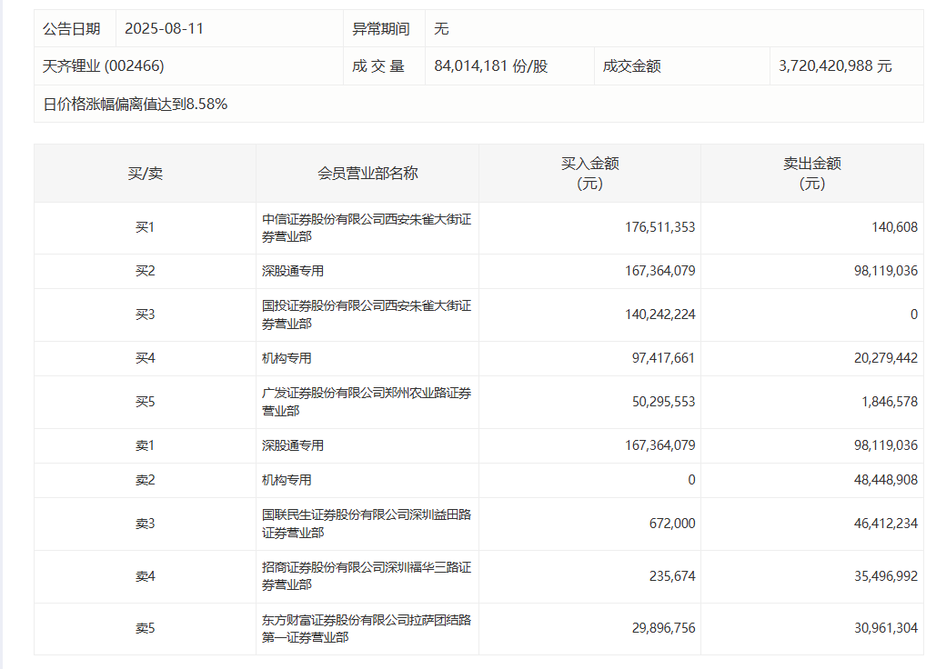 天齐锂业今日涨停 深股通净买入6924.50万元天宇优配 天齐锂业今日涨停 深股通净买入6924.50万元