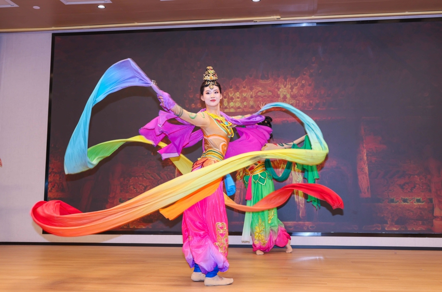 压轴节目《飞天伎乐》令观众置身千年石窟艺术之境。《飞天伎乐》的编导黎明东说:“当我们漫步在石窟当中,发现石窟中有非常丰富的艺术元素和繁多的艺术形象,这些形象动作不一、形态各异。我们希望把这些具有独特性、代表性的历史形象通过艺术化创作,并结合现代审美,让人们能感受到历史与现代的千年对话,更能感受到至臻、至善、至美的文化传递。”